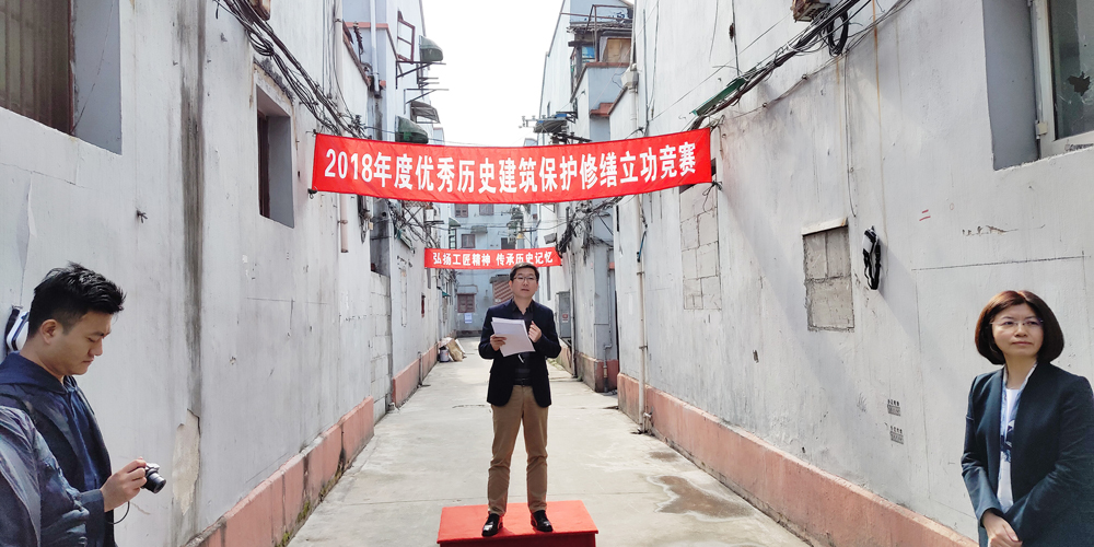 金秋十月,金桂飄香,2018年10月22日至2018年10月24日,由上海市歷史建筑保護(hù)事務(wù)中心舉辦的“2018年度優(yōu)秀歷史保護(hù)修繕立功競(jìng)賽活動(dòng)”在楊浦區(qū)榆林路528弄(寶福里)舉行,此次競(jìng)賽活動(dòng)主要比賽內(nèi)容為歷史保護(hù)建筑中重要修復(fù)工藝:清水磚墻修復(fù)。我公司派出了具有歷史保護(hù)建筑及文物建筑方面的優(yōu)秀管理團(tuán)隊(duì)及手藝精湛的老工匠參加了比賽(全部為單位在職職工)。經(jīng)過(guò)三天的角逐,我公司在本次比賽中取得了良好的成績(jī)!