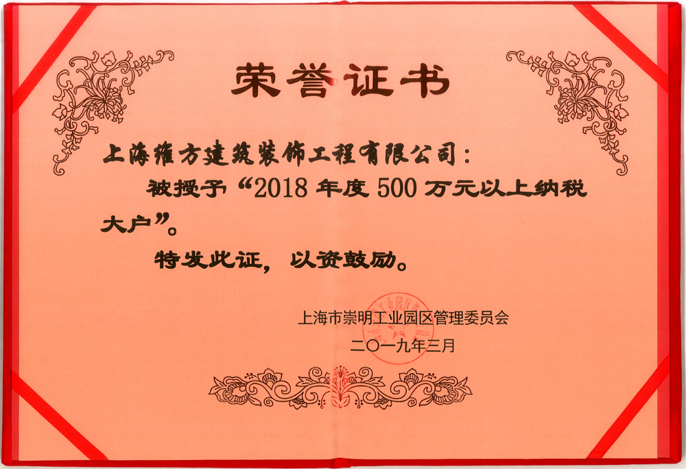 公司獲2018年度崇明工業(yè)園區(qū)納稅大戶榮譽(yù)稱號