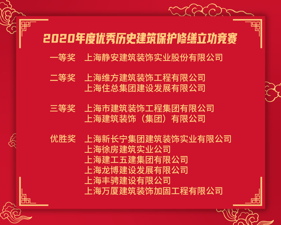 我司于10月23日至28日舉行的“2020年度優(yōu)秀歷史建筑保護(hù)修繕立功競(jìng)賽”中,高度重視,全力以赴,最終喜獲二等獎(jiǎng)!
