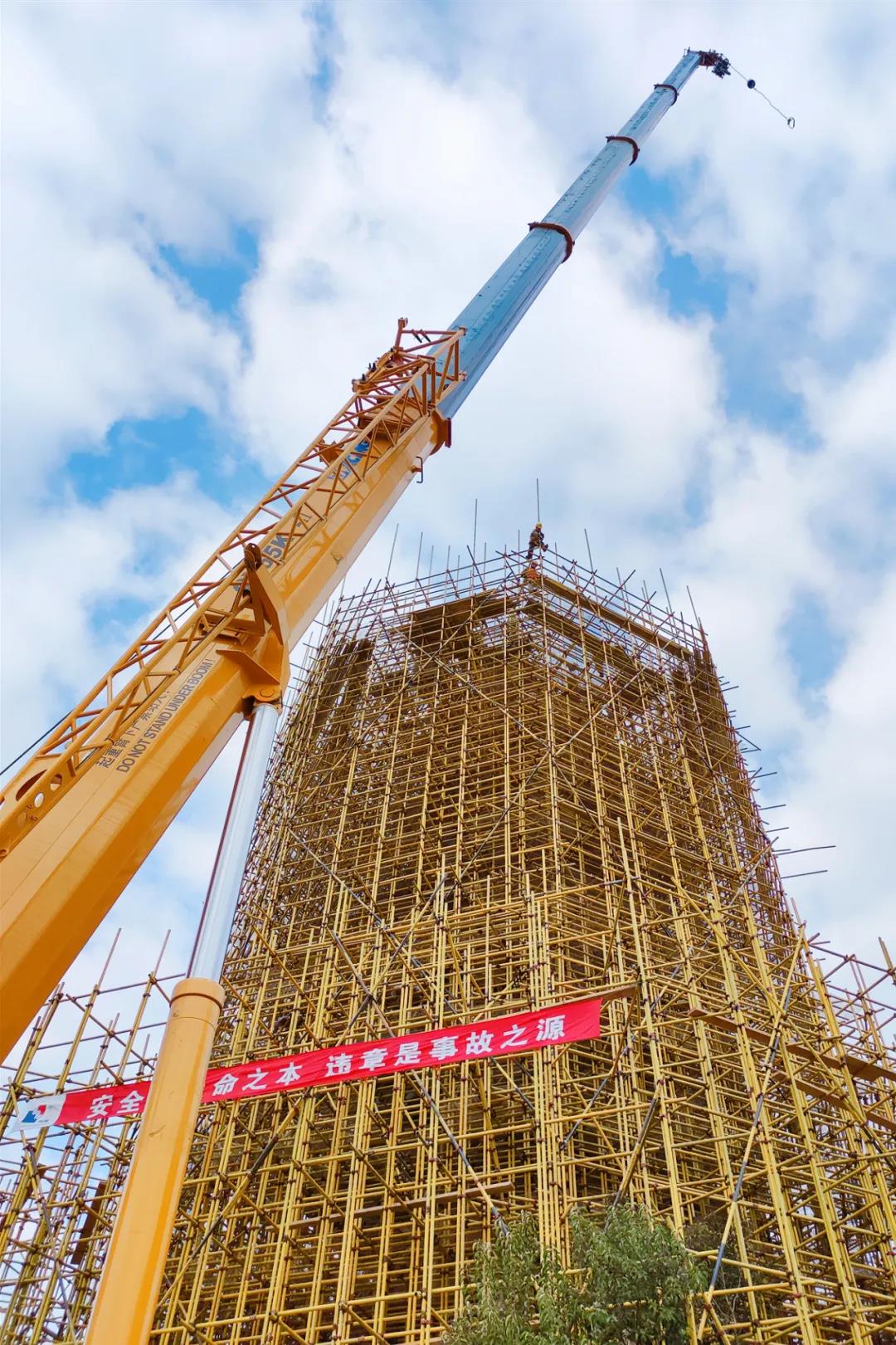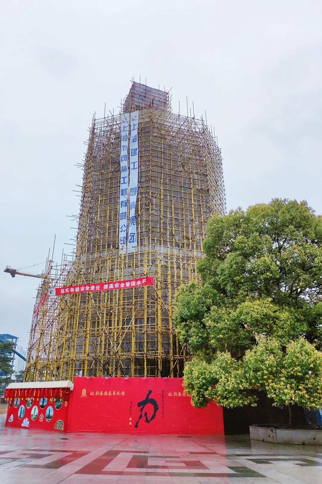 ? ? ? ??為了在龍華塔保養(yǎng)維護(hù)過程中,腳手架不與龍華塔有任何部位接觸,腳手架搭建方案經(jīng)過縝密設(shè)計(jì)與嚴(yán)格審查后,才得以實(shí)施。腳手架總重量達(dá)100多噸,從搭建方案設(shè)計(jì)到搭建完成,共耗時(shí)近4個(gè)月,占據(jù)了本次龍華塔保養(yǎng)維護(hù)項(xiàng)目總工期的近一半。