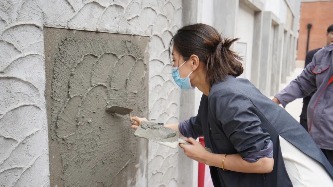 歷史建筑的修繕離不開工匠們的辛勤耕耘,他們以嫻熟技藝重現(xiàn)建筑細(xì)節(jié),以精工匠心重綻建筑神采?;顒?dòng)現(xiàn)場(chǎng),來自維方公司的工匠師傅為大家展示了魚鱗拉毛工藝。調(diào)制漿料,手腕一轉(zhuǎn),著力一刷,魚鱗輪廓就這樣完成了,極具弧形美感。在場(chǎng)的參觀者們嘖嘖稱奇,在老師傅的教導(dǎo)下,大家也化身為工匠學(xué)徒,體驗(yàn)了一回修繕技藝的實(shí)操過程,新鮮、有趣又有意義。