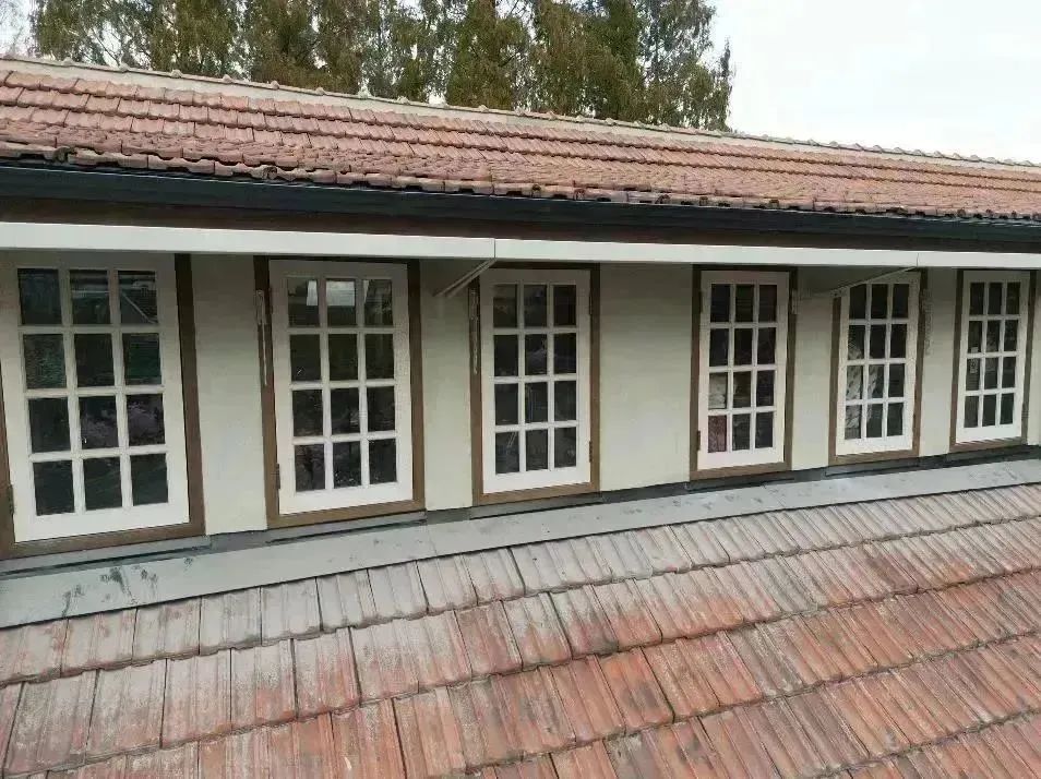 南立面作為內(nèi)山書店的主要立面是本次修繕工程的重點(diǎn),結(jié)合對歷史照片的研究分析,判定立面的原有樣式及材質(zhì),修繕團(tuán)隊(duì)使用相應(yīng)工藝進(jìn)行修繕恢復(fù);對于建筑屋面進(jìn)行翻修,重做防水和保溫層,調(diào)整高低不平之處,并對山墻壓頂、雨水檐溝、天溝落、水管及老虎窗進(jìn)行修繕。