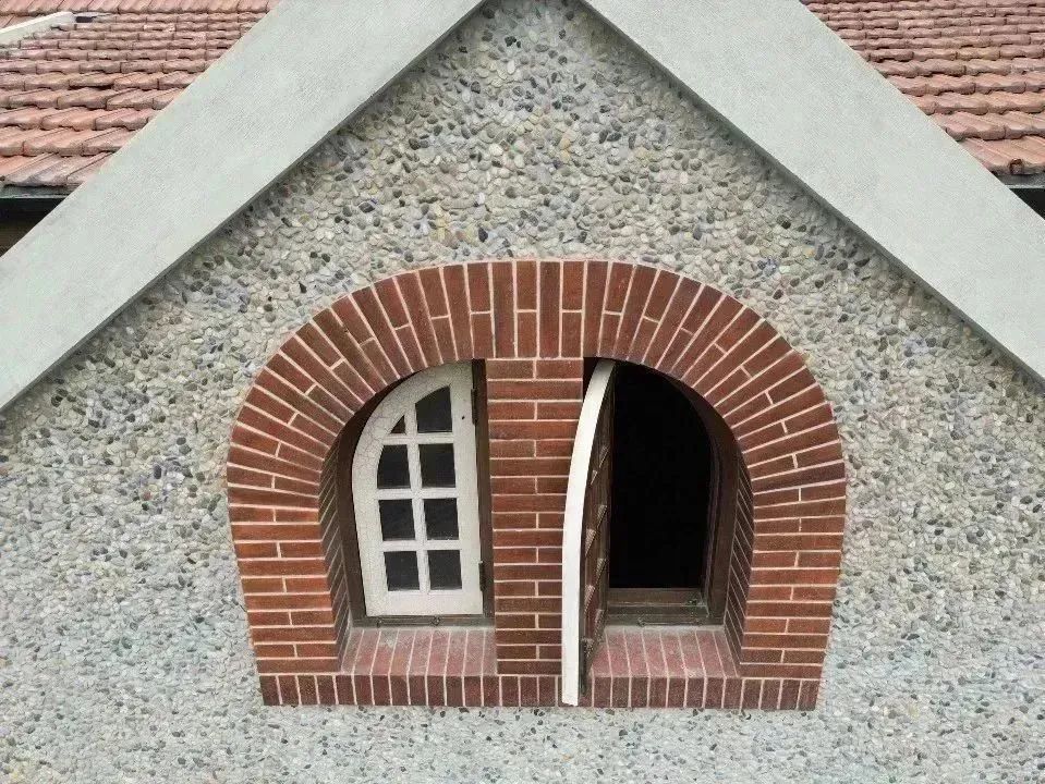用鵝卵石工藝恢復(fù)立面原有卵石、紙筋灰材質(zhì)? ? ? ? ? ? ? ? ? ? ? ? ? ? ? ? ? ? ? ? ? ? ? ? ? ? ? ? ? ? ? ? 用白色耐候漆冰裂紋恢復(fù)立面原有木質(zhì)門窗