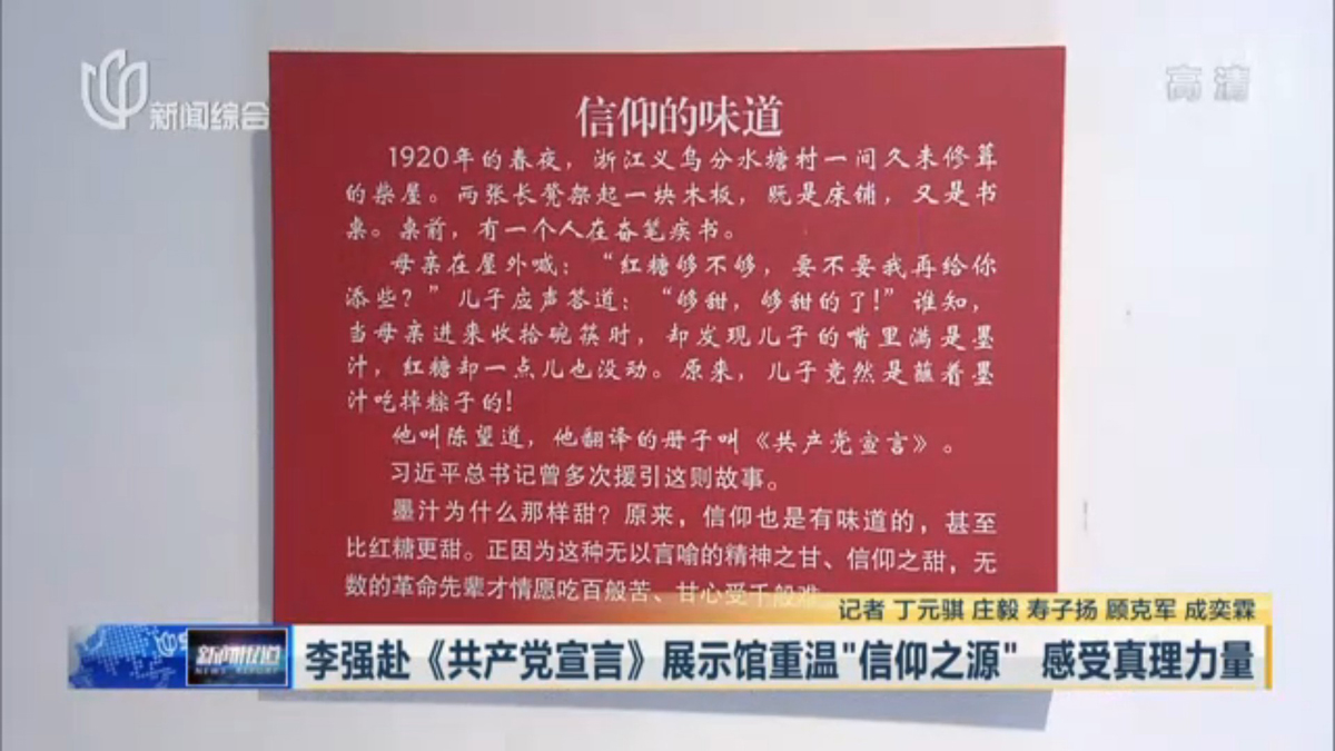 ? ? ? ? 1920年春,陳望道在浙江老家柴房苦譯《共產(chǎn)黨宣言》,曾將墨水誤作紅糖,吃下母親送來的粽子?!罢褐贼兆?,還說味道很甜”。這則被習(xí)近平總書記多次提及的故事“真理的味道”,在展廳中通過視頻播放。市領(lǐng)導(dǎo)在此駐足凝視,李強(qiáng)表示,在陳望道先生的舊居重溫“信仰之源”,確實(shí)深受觸動和啟迪,也感受到強(qiáng)大的真理力量,這對于我們不忘初心、牢記使命,把新時(shí)代中國特色社會主義推向前進(jìn),是一次深刻的教育。從歷史到現(xiàn)實(shí),我們對馬克思和《共產(chǎn)黨宣言》的最好紀(jì)念,就是把習(xí)近平新時(shí)代中國特色社會主義思想這一當(dāng)代中國馬克思主義研究好、宣傳好、貫徹好。